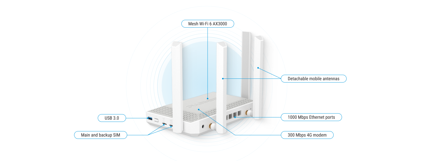 Mobile Internet can be used as a primary Internet connection or as a backup to an Ethernet connection. Otherwise, Keenetic Hopper 4G+ is for those who need high speed routing, LAN and VPN connections, USB options, applications and generally the full functionality of KeeneticOS.