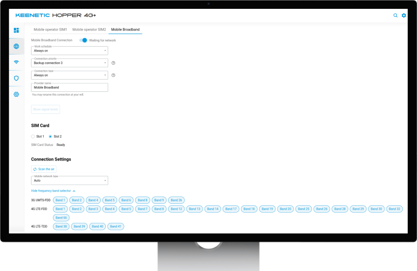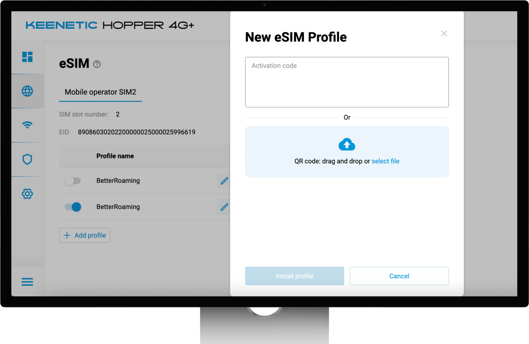 KeeneticOS includes a built-in eSIM management interface, allowing mobile connectivity to be configured and controlled directly from the router